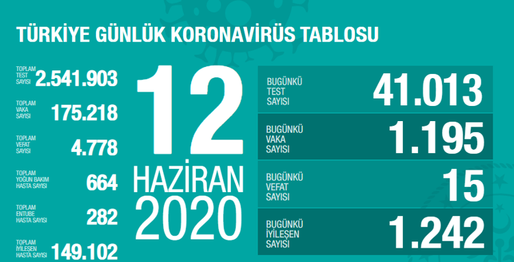 Türkiye 12 Haziran Korona Tablosu Haberleri from i.internethaber.com Türkiye 9 haziran 2020 korona tablosu. 0 3 bir dakikadan az. Paylaşılan veride 3 bin 218 kişinin de iyileştiği toplam iyileşen hasta sayısının 144 bin 598 olduğunu bildirdi. Sağlık bakanı fahrettin koca, son 24 saatte tespit edilen korona virüs tablosunu açıkladı. 9 haziran çarşamba virüs vaka sayısı kaç? Türkiye genelinde koronavirüs son durum. Toplam can kaybı 4 bin 729, vaka sayısı 172 bin 114 oldu. Sağlık bakanlığı, 9 haziran 2020 günü 993 koronavirüs vakasının tespit edildiğini, 18 kişinin yaşamını yitirdiğini duyurdu.